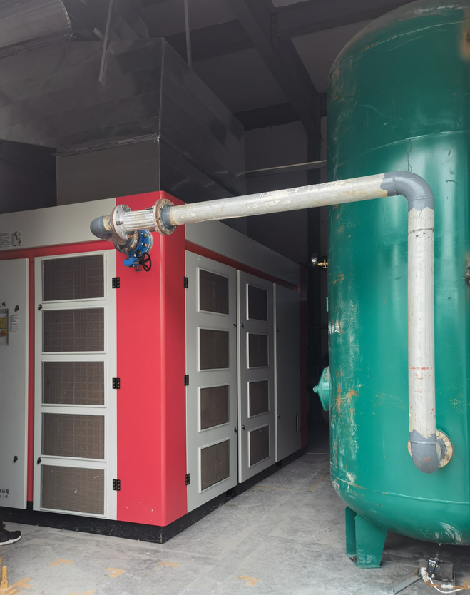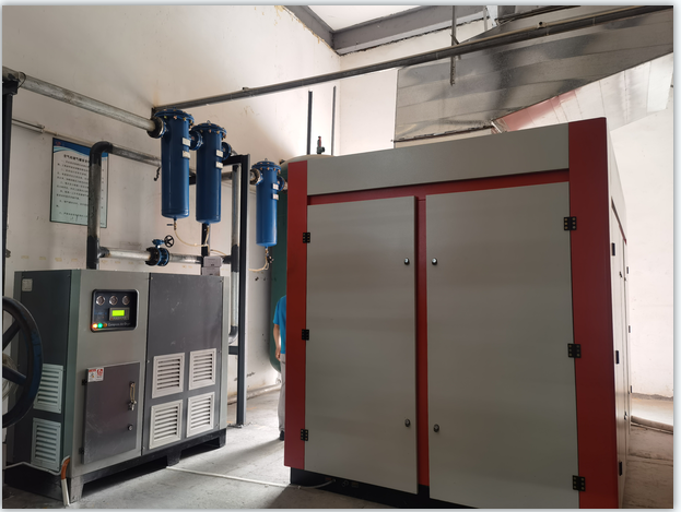 某紡織公司空壓機(jī)節(jié)能項(xiàng)目:因公司生產(chǎn)需要,增加一套185kw大型兩級(jí)壓縮永磁變頻螺桿式空壓機(jī)替代多臺(tái)中小空壓機(jī),增加了機(jī)房的空間環(huán)境,對(duì)機(jī)器的運(yùn)行、散熱、維修維護(hù)的方便性都有很大的效率,提高節(jié)能效果,為企業(yè)節(jié)約電費(fèi)。
